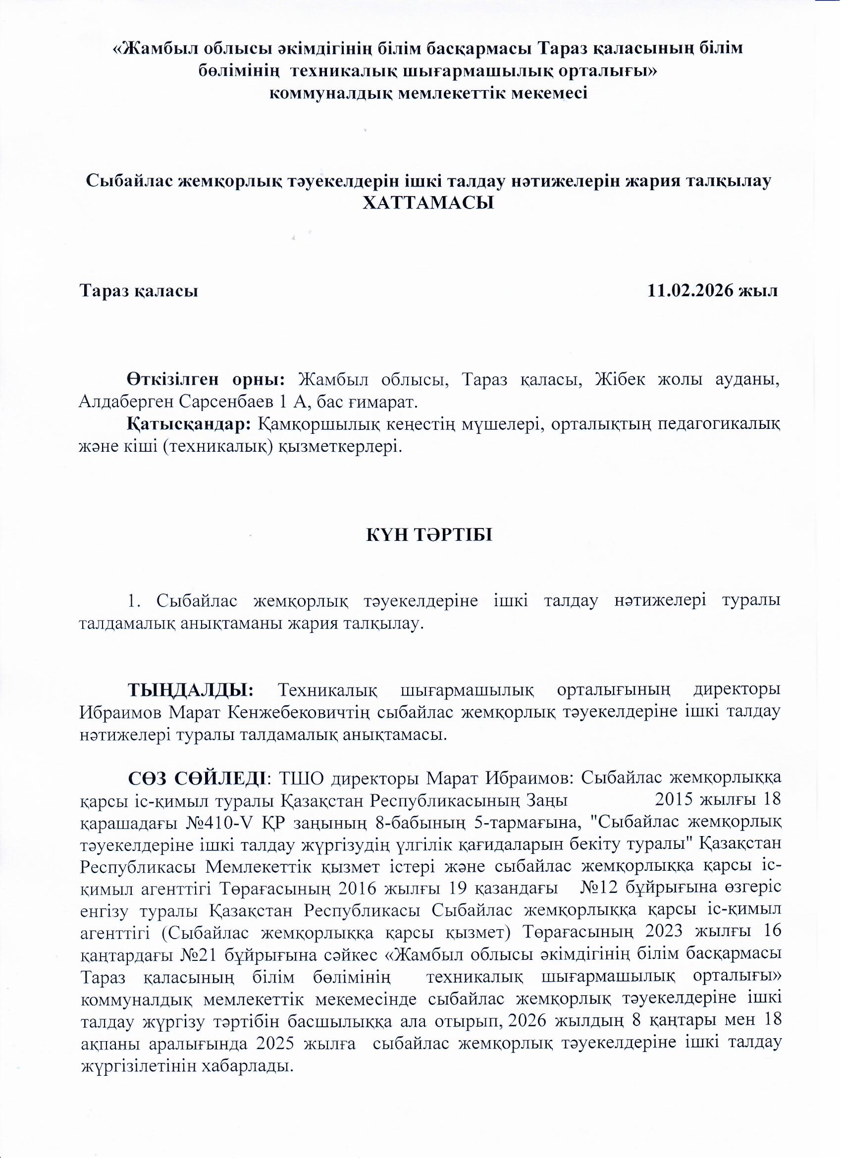 Организация работы по выявлению коррупционных рисков в ЦТТ